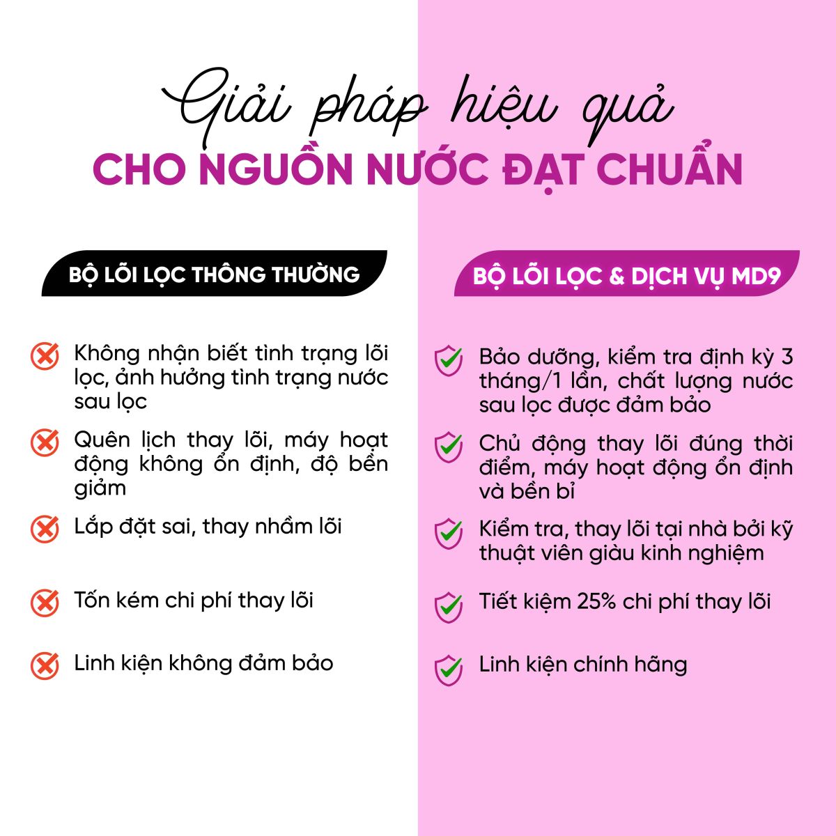 - Luôn đảm bảo chất lượng nguồn nước đầu ra đạt tiêu chuẩn Quốc gia về nước ăn uống và tăng tuổi thọ linh kiện